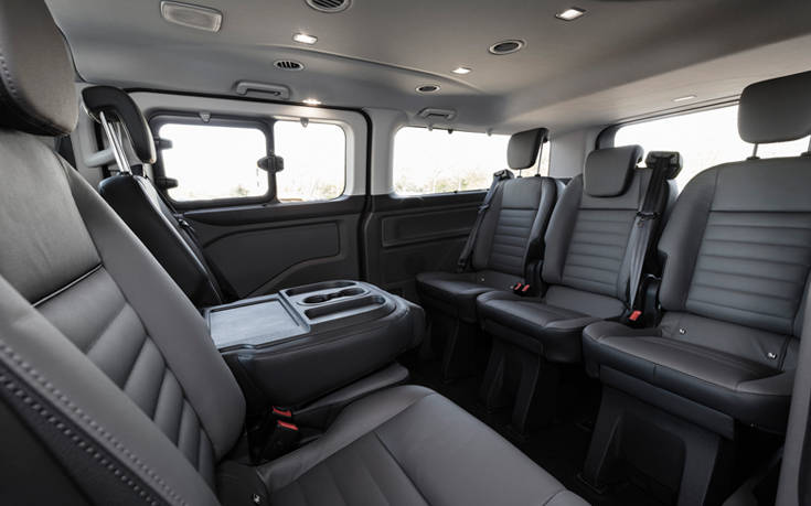 Διαθέσιμο σε διάταξη οκτώ ή εννέα θέσεων, το Tourneo Custom διατίθεται σε εκδόσεις με κοντό ή μακρύ μεταξόνιο, με τη μακρύτερη να παρέχει πρόσθετο χώρο αποσκευών πίσω από την τρίτη σειρά καθισμάτων.