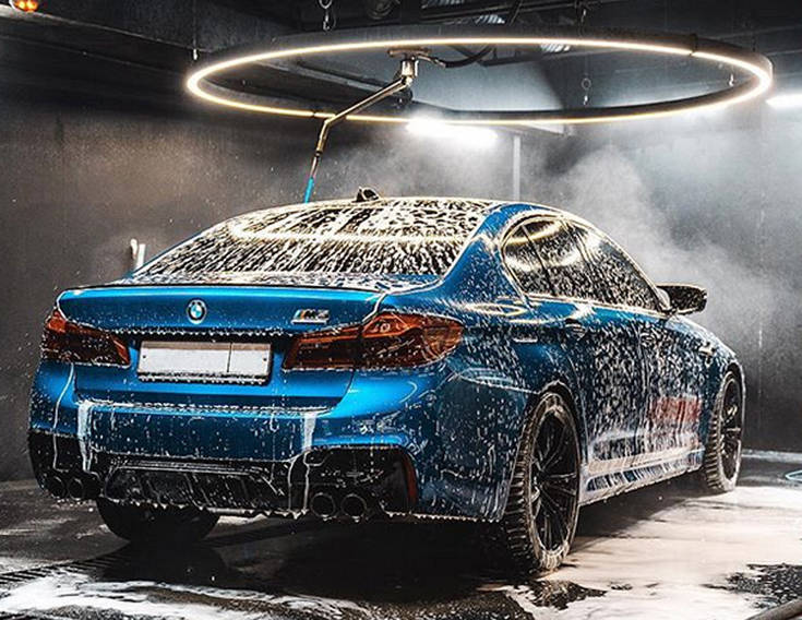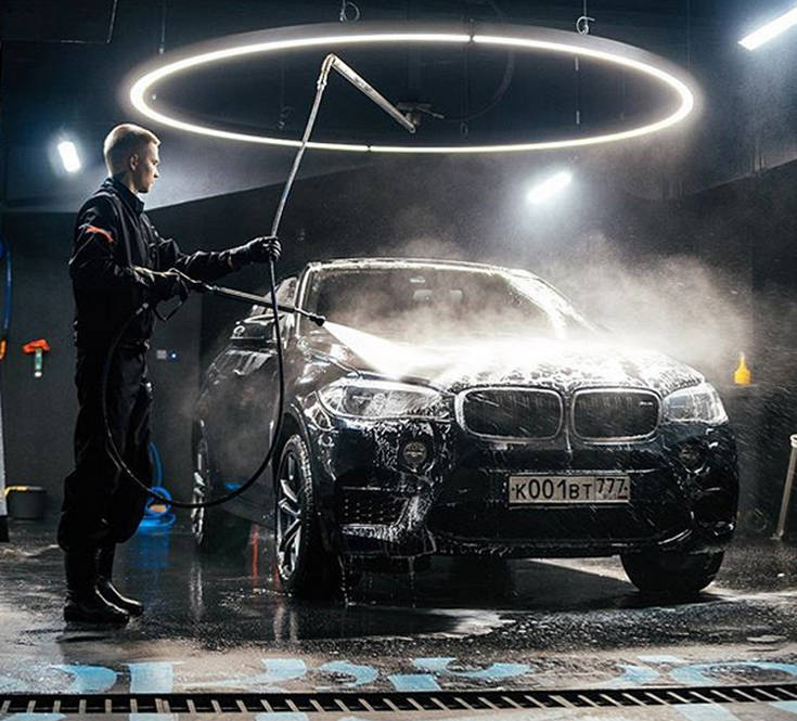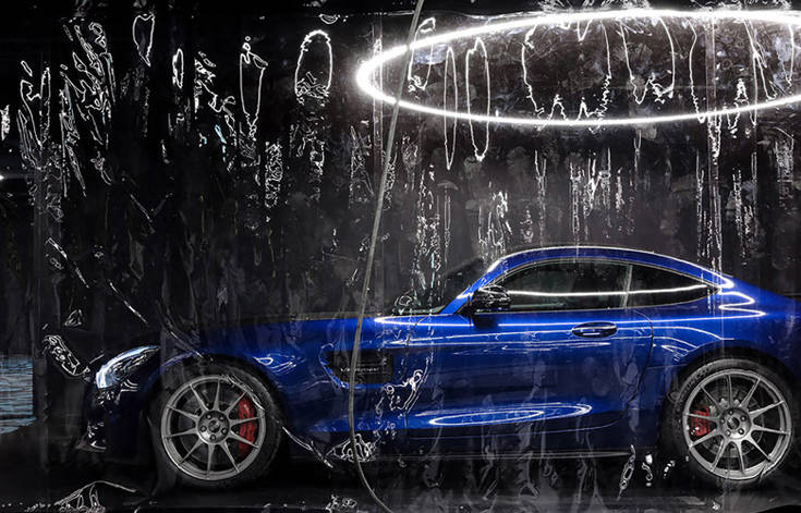 Ένα πλυντήριο που λούζεται στο λευκό νέον φως, το οποίο με την αντίθεση του κατάμαυρου εσωτερικού δεν αφήνει κανένα σημείο αθέατο στη λαμαρίνα του αυτοκινήτου.