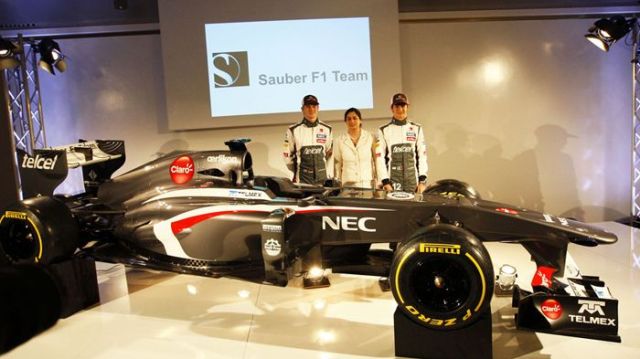 Το σεντόνι τράβηξαν οι πιλότοι που θα βρίσκονται πίσω από το μονοθέσιο της Sauber το 2013, Nico Hulkenberg και Esteban Gutierrez.