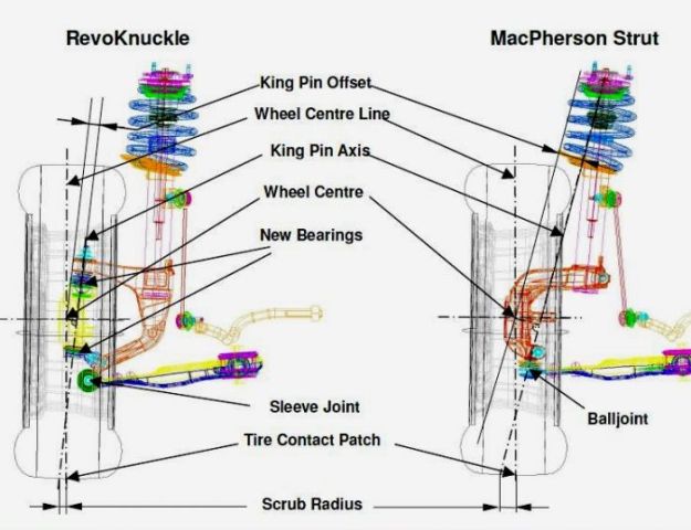 Όπως ο προκάτοχος, το νέο RS θα διαθέτει την τροποποιημένη μορφή των γονάτων MacPherson που είναι γνωστή ως RevoKnuckle χάρη στην οποία μειώνεται το όφσετ του βασιλικού πείρου, αλλά και η γωνία κλίσης του βασιλικού πείρου, που προκαλούν το γνωστό «ψάρεμα» στο τιμόνι κατά την επιτάχυνση στα προσθιοκίνητα.