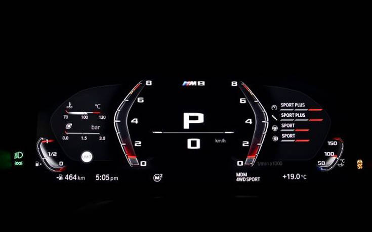 Σε Sport mode, ο οδηγός επωφελείται από το M View στον πίνακα οργάνων και το Head-Up Display. Στην περίπτωση αυτή, εμφανίζονται στο cockpit μόνο πληροφορίες που έχουν σχέση με τη σπορ οδήγηση – όπως στροφόμετρο Μ και λυχνίες αλλαγών σχέσεων (που δείχνουν την ιδανική στιγμή για την αλλαγή μιας σχέσης), ψηφιακό ταχύμετρο και την επιλεγμένη σχέση στο κιβώτιο.