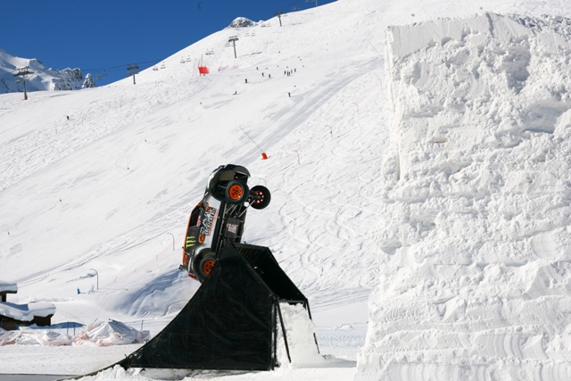 Η πτήση ήταν αρμονική, το αυτοκίνητο έκανε μια πλήρη περιστροφή 360ο και προσγειώθηκε στους τροχούς του πάνω στη χιονισμένη ράμπα προσγείωσης και σε ύψος 8 μέτρων από το έδαφος.