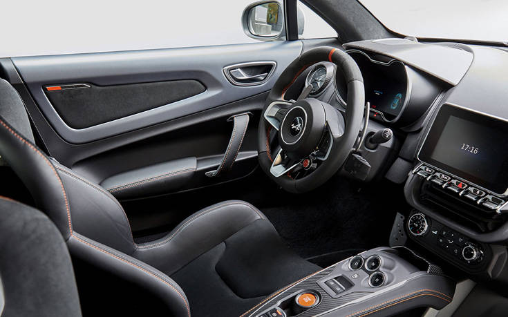 Το ήδη πανάλαφρο αλουμινένιο A110 χάνει κι άλλα κιλά χάρη στην οροφή του από ανθρακόνημα αλλά και τους καινοτόμους τροχούς. Ακόμα και ο turbocharged κινητήρας των 1,8 λίτρων είναι φτιαγμένος από ελαφρύτερα κράματα.
