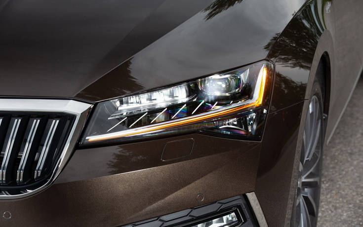 Η Skoda εξόπλισε το ανανεωμένο Superb και με πρωτοποριακή τεχνολογία φωτισμού. Οι προβολείς Full LED Matrix είναι διαθέσιμοι για πρώτη φορά σε μοντέλο παραγωγής της μάρκας, αυξάνοντας έτσι τόσο το επίπεδο άνεσης του οδηγού όσο και την ενεργητική ασφάλεια. Η σύγχρονη τεχνολογία επιτρέπει στους οδηγούς να έχουν συνεχώς ενεργοποιημένη τη μεγάλη σκάλα χωρίς να ενοχλούν τους άλλους χρήστες του δρόμου. Εκτός από την ενεργή λειτουργία Coming/Leaving Home που είναι στάνταρ στους Full LED Matrix προβολείς, τα δυναμικά φλας των Full LED πίσω φώτων συμβάλλουν επίσης και στην όμορφη εμφάνιση.