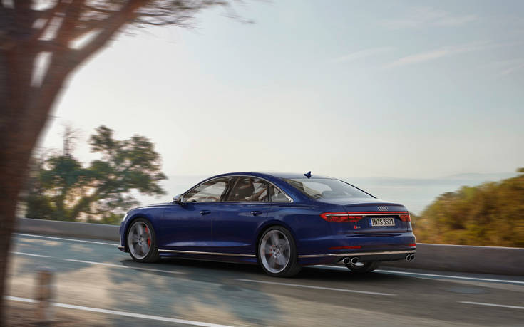 Χάρη στην υβριδική τεχνολογία, ο V8 του S8 με τους δύο υπερσυμπιεστές προσφέρει απόλυτα γραμμική απόδοση των 571 ίππων και της ροπής των 800 Nm, καθώς και την άμεση διαθεσιμότητά τους ανά πάσα στιγμή. Η τελική ταχύτητα περιορίζεται ηλεκτρονικά στα 250 χλμ./ώρα. Ειδικοί σύνδεσμοι στον αλουμινένιο στροφαλοθάλαμο ελαχιστοποιούν τις τριβές για εξαιρετικά ομαλή λειτουργία, ενώ τα αυτόματα ενεργοποιημένα κλαπέτα στο σύστημα εξαγωγής/εξάτμισης συνθέτουν έναν μοναδικό, εντυπωσιακό ήχο.