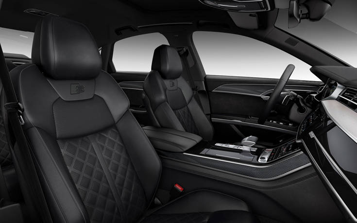 Κάθε λεπτομέρεια του νέου S8 αντικατοπτρίζει τον χαρακτήρα ενός αυθεντικού σπορ premium μοντέλου. Ένα ιδιαίτερο χαρακτηριστικό είναι τα στάνταρ ειδικής σχεδίασης καθίσματα με σπορ εμφάνιση. Διαθέτουν ευρύ συνδυασμό ρυθμίσεων, προσαρμοζόμενες πλευρικές ενισχύσεις και ανεξάρτητη θέρμανση τριών σταδίων για κάθε κάθισμα, καθώς και λειτουργίες εξαερισμού και μασάζ. Τα πίσω καθίσματα προσφέρουν επίσης πολυάριθμα χαρακτηριστικά για εξαιρετική άνεση και παρέχουν μια first class ατμόσφαιρα στους επιβάτες.