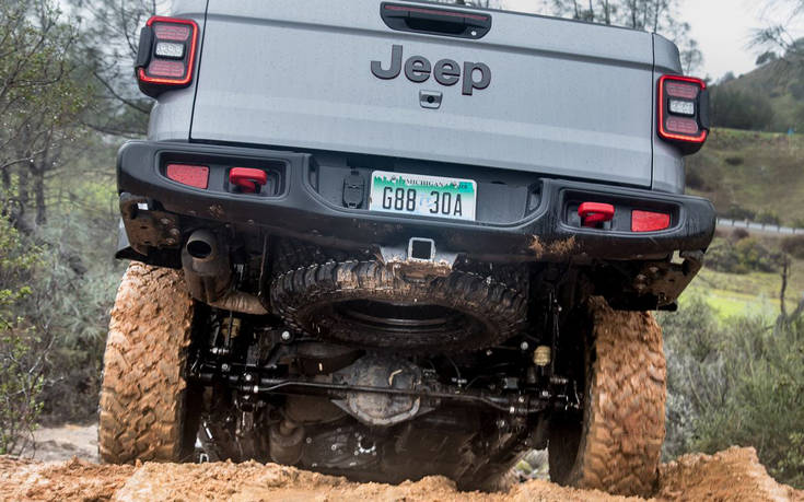 Επιπλέον, στο Gladiator Rubicon, το σύστημα Rock-Trac 4×4 συνδυάζεται με ενισχυμένους άξονες Dana 44 3ης γενιάς και την επιλογή «4LO» που προσφέρει ιδιαίτερα «κοντή» σχέση μετάδοσης 4:1.