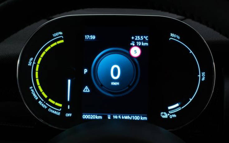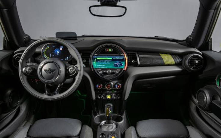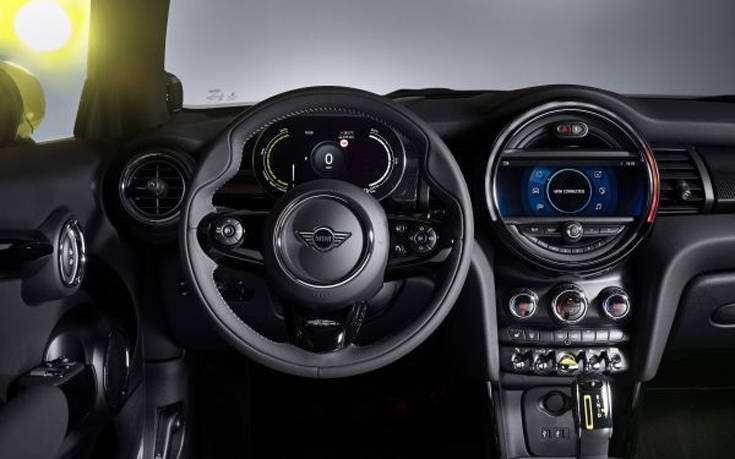 Το Cooper SE της Mini εφοδιάζεται στάνταρ με ένα ψηφιακό πίνακα οργάνων που αποτελείται από μία έγχρωμη οθόνη 5,5″ σε σχεδίαση Black Panel πίσω από το τιμόνι. Στο κέντρο της πλήρως ψηφιακής οθόνης, η ταχύτητα εμφανίζεται αριθμητικά πλαισιωμένη από μια κλίμακα που εμφανίζεται επίσης στο δακτύλιο φώτων του κεντρικού οργάνου σε κόκκινο (SPORT mode), λευκό (MID) ή πράσινο (GREEN και GREEN+), ανάλογα με το επιλεγμένο προφίλ.