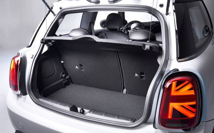 Το Cooper SE προσφέρει επίσης αξιόπιστο κράτημα, κάτι στο οποίο συμβάλλει και η θέση της μπαταρίας υψηλής τάσης. Αυτή τοποθετείται βαθιά στο πάτωμα του οχήματος, ανάμεσα στα εμπρός καθίσματα και κάτω από τα πίσω καθίσματα. Λόγω αυτής της διάταξης, δεν περιορίζεται ο ωφέλιμος χώρος αποσκευών συγκριτικά με τις εκδόσεις με συμβατικούς κινητήρες. Όπως στο τρίθυρο Mini με κινητήρα καύσης, ο χώρος αποσκευών πίσω από την πίσω πόρτα είναι 211 λίτρα, και μπορεί να φτάσει στα 731 λίτρα με τις πλάτες των πίσω καθισμάτων αναδιπλωμένες.