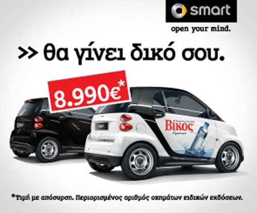 Τώρα, το γνωστό σε όλους μας smart γίνεται πιο προσιτό ώστε να μπορούν όλοι να το αποκτήσουν! Σε συνεργασία με την ελληνική εταιρία εμφιάλωσης και διακίνησης του φυσικού μεταλλικού νερού «Βίκος», ΒΙΚΟΣ Α.Ε, η smart προχώρησε στη δημιουργία ειδικής έκδοσης με τιμή 8.990 ευρώ, με όφελος απόσυρσης*!