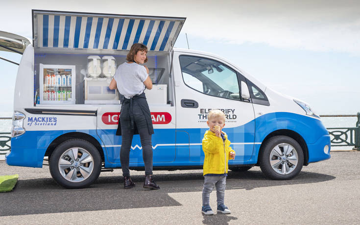 Η Nissan συνεργάστηκε με την Mackie’s of Scotland, μια οικογενειακή επιχείρηση γαλακτοπαραγωγής και παγωτού, που τροφοδοτείται με ενέργεια από ανανεώσιμες πηγές, όπως ο άνεμος και ο ήλιος. Το έργο αυτό, καταδεικνύει πώς μια προσέγγιση παραγωγής με φιλικό τρόπο για το περιβάλλον, μπορεί να εξαλείψει την εξάρτηση από τον άνθρακα, σε κάθε στάδιο της παραγωγικής διαδικασίας του παγωτού.