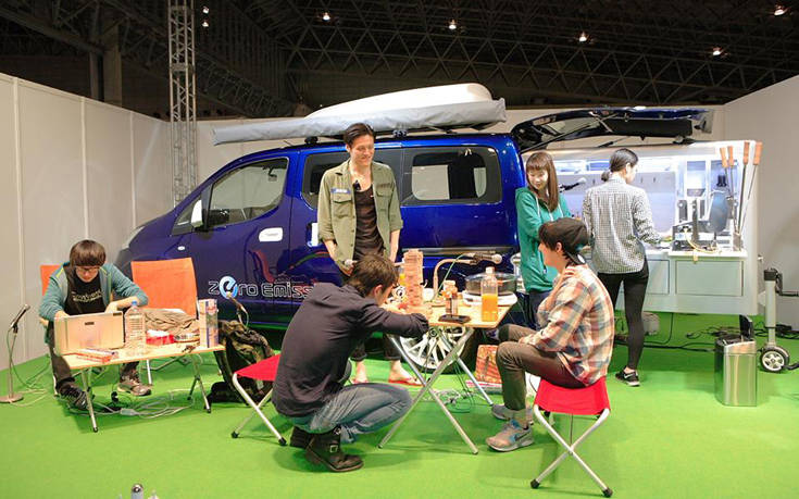 Η εκδρομή σε μεγάλους υπαίθριους χώρους, με οχήματα αναψυχής που συνδυάζουν τεχνολογία αιχμής, αυξάνεται σε δημοτικότητα, με τους millennials να πρωταγωνιστούν σε αυτή την τάση. Πριν από μερικά χρόνια, η Nissan ξεκίνησε ένα έργο συμμετοχικής χρηματοδότησης (crowfunding) στην Ιαπωνία, για να δείξει στους εκδρομείς πως μπορούν απολαμβάνουν τις σύγχρονες ανέσεις μέσα στην άγρια φύση, δίχως να την καταστρέψουν. Για τον σκοπό αυτό, μετέτρεψε ένα αμιγώς ηλεκτροκίνητο φορτηγό στο «Ultimate Smart Barbecue», προκειμένου η μαγειρική να γίνεται χωρίς εκπομπές διοξειδίου του άνθρακα. Το φορτηγό φρόντιζε για την άνεση των παρευρισκομένων με ένα ηλεκτρικό απωθητικό κουνουπιών και τροφοδοτούσε με ενέργεια ένα σύστημα καραόκε για την ψυχαγωγία τους. Το όλο εγχείρημα αναπτύχθηκε σε συνεργασία με την Japan Barbecue Association και αποτελεί μια υπηρεσία κατά παραγγελία, σε επιλεγμένους πελάτες.