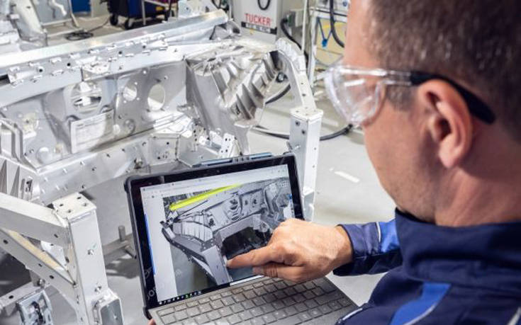 Μία εφαρμογή επαυξημένης πραγματικότητας (AR) επιταχύνει σημαντικά την αναγνώριση των μπουλονιών στο πάτωμα του αμαξώματος και τη σύγκριση με το μοντέλο CAD. Αυτή η εφαρμογή αποτελεί μία σημαντική καινοτομία που επαληθεύει την ακριβή θέση και ολοκλήρωση της διαδικασίας. Εκτός του ότι μειώνει την περιπλοκότητα, καθιστά πιο αποδοτική τη συνεργασία μεταξύ των διαφόρων εξειδικευμένων τμημάτων.