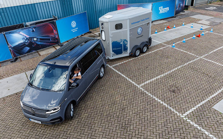 - – Υποβοήθηση τρέιλερ (Trailer Assist). Κάθε μοντέλο της γκάμας αποτελεί ένα ιδανικό όχημα ρυμούλκησης, με ικανότητα έλξης έως 2.500 κιλά. Οι ελιγμοί με ένα τρέιλερ γίνονται πλέον πιο εύκολοι στο νέο Transporter 6.1 χάρη στο Trailer Assist. Έτσι, ο οδηγός απαλλάσσεται από την ανάγκη να προσαρμοστεί στον ειδικό τρόπο οδήγησης που απαιτείται στην φάση οπισθοπορείας με ένα ρυμουλκούμενο. Χρησιμοποιώντας τον περιστροφικό διακόπτη του συστήματος ρύθμισης των ηλεκτρικών καθρεφτών (που για το σκοπό αυτό γίνεται joystick) και την οθόνη του Ccockpit, ο οδηγός απλά ορίζει τη γωνία με την οποία πρέπει να κινηθεί προς τα πίσω το τρέιλερ και το νέο Transporter 6.1 αναλαμβάνει μόνο του το τιμόνι.