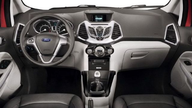 Στο εσωτερικό του EcoSport, το ταμπλό μαζί με όλα τα επιμέρους χειριστήρια και τα όργανα έχει μεταφερθεί σχεδόν αυτούσιο από το Fiesta, ενώ μόνο το κάθετο design των ακριανών αεραγωγών διαφοροποιείται σε σχέση με το μικρό μοντέλο της Ford, παραπέμποντας στο Focus.