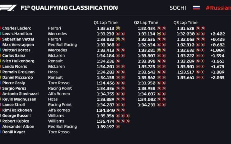 Ο οδηγός της Ferrari επικράτησε στις κατατακτήριες δοκιμές του δέκατου έκτου γύρου του φετινού παγκοσμίου πρωταθλήματος της Formula 1 που γίνεται στη Ρωσία, ωστόσο η ιταλική ομάδα δεν κλείδωσε την πρώτη σειρά της εκκίνησης αφού στις… καθυστερήσεις ο Lewis Hamilton πέρασε μπροστά από τον Sebastian Vettel.