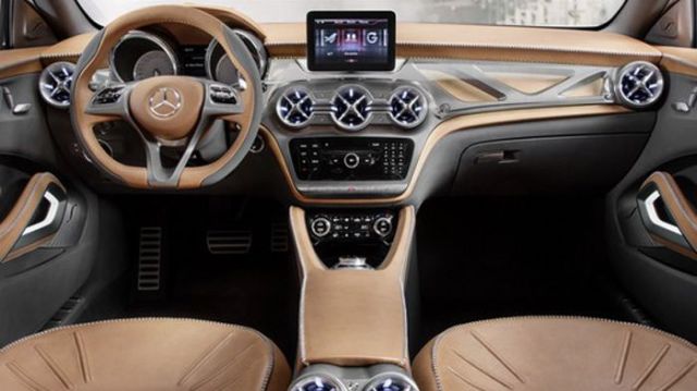Παρότι στο πρωτότυπο η Mercedes ντύνει το εσωτερικό της GLA με «φουτουριστικού» τύπου επενδύσεις και υλικά, στο μοντέλο παραγωγής η σχεδίαση του ταμπλό δεν αναμένεται να αλλάξει κατά πολύ σε σχέση με τα γνωστά μοτίβα της A-Class και ιδίως, της νεότερης Mercedes CLA.