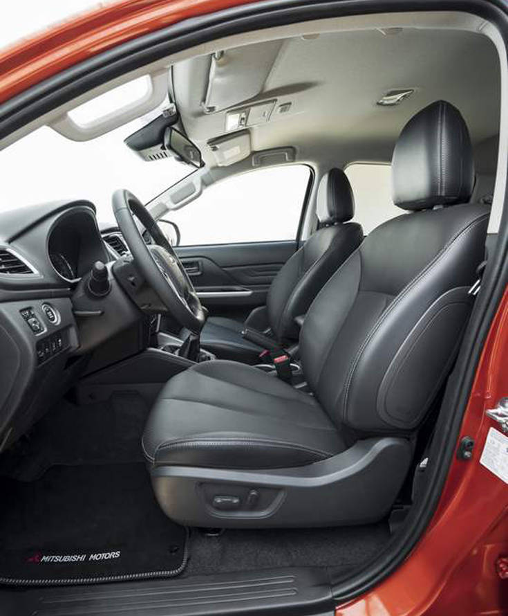 Έτσι, η 6η γενιά του L200 βελτιώθηκε σε αρκετούς βασικούς τομείς και διαθέτει μια καλοκατασκευασμένη και πολυτελή καμπίνα επιβατών, με σκληρές πλαστικές επιφάνειες, αλλά και μαλακές προστατευτικές επενδύσεις, ή τις ραφές στην κονσόλα του πατώματος, στα υποβραχιόνια και το χειρόφρενο, όπου φαίνεται η προσοχή στη λεπτομέρεια.