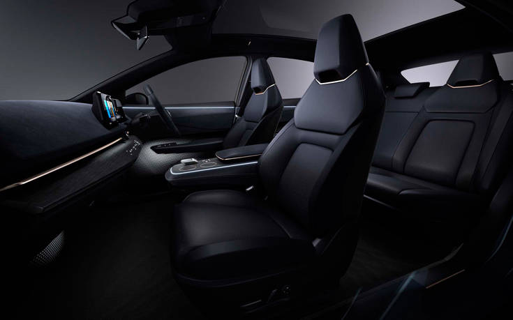 Τα υποστηρικτικά και άνετα καθίσματα του ηλεκτρικού crossover διαθέτουν ένα εξαιρετικά λεπτό πλαίσιο, παρέχοντας ακόμα πιο ελεύθερο εσωτερικό χώρο και βελτιωμένη ορατότητα. Τα μπροστινά και τα πίσω καθίσματα είναι τοποθετημένα για να εξασφαλίζουν ότι ο κάθε επιβάτης απολαμβάνει μια υπέροχη θέα στο περιβάλλον και προσφέρουν μια αίσθηση κύλισης πάνω σε ένα μαγικό χαλί. Για να γίνουν ακόμα πιο άνετες οι μακρινές μετακινήσεις, τα καθίσματα διαθέτουν διάτρητη δερμάτινη επένδυση, με ενισχυμένη την περιοχή της πλάτης και των γοφών.