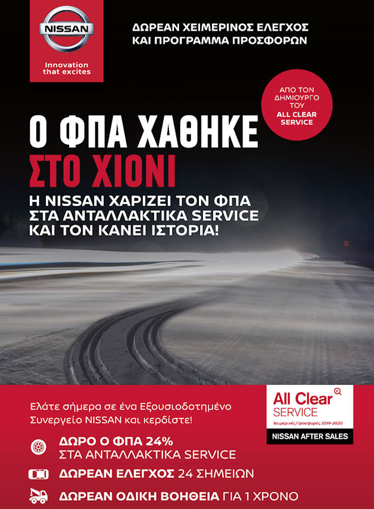 Η Ν. Ι. Θεοχαράκης με το πρόγραμμα All Clear Service, «εγγυάται» ότι, αυτός ο χειμώνας θα είναι ο πιο «ζεστός» για το δικό σας Nissan.