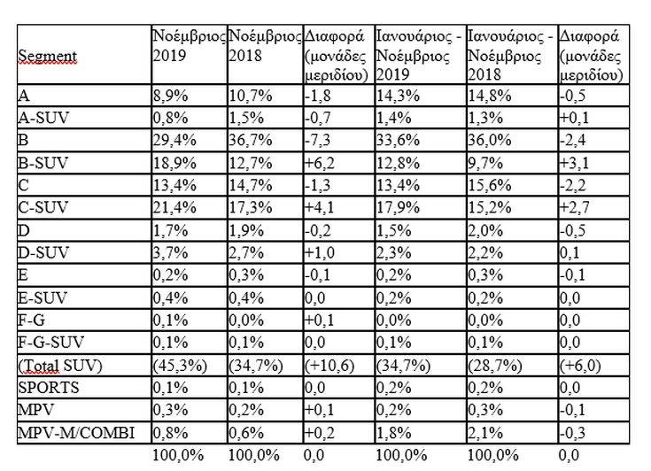 Επιπλέον, σύμφωνα με τους πρώτους υπολογισμούς, η πρόοδος στις κατηγορίες επιβατικών και στην κατανομή ανά καύσιμο, ως το Νοέμβριο, δείχνουν την κατηγορία Β ως την πλέον δυνατή της αγοράς, ενώ η βενζίνη συνεχίζει να κερδίζει έδαφος έναντι του πετρελαίου, τα υβριδικά αύξησαν το μερίδιό τους σχεδόν κατά 4%, ενώ τα αμιγώς ηλεκτρικά παραμένουν αριθμητικά αμελητέα. Συνολικά οι αριθμοί εδώ, έχουν ως εξής:
