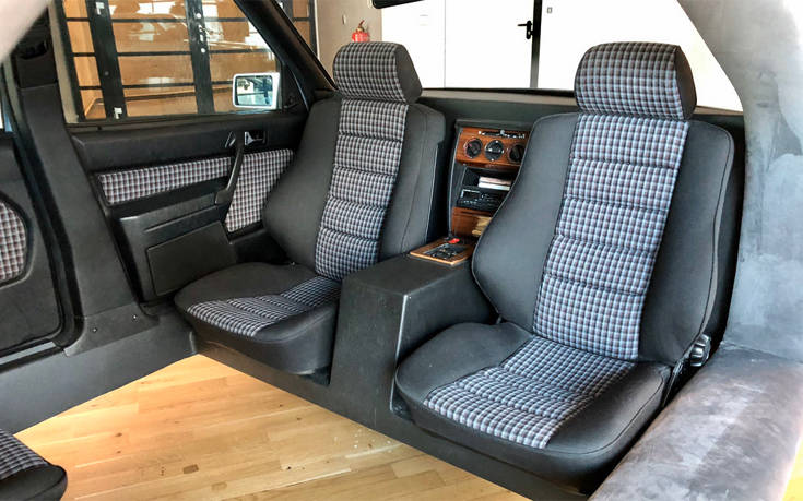 Το εσωτερικό του αυτοκινήτου έχει μετατραπεί σε καθιστικό, με τα καθίσματα να είναι αντικριστά, το πάτωμα του οχήματος έχει βγει ώστε τα πόδια να ακουμπούν στο πάτωμα του γραφείου, υπάρχει ψυγειάκι στο πορτ μπαγκάζ για δροσερά ποτά, ενώ ένα παχύ χαλί καλύπτει τα τοιχώματα της Mercedes.