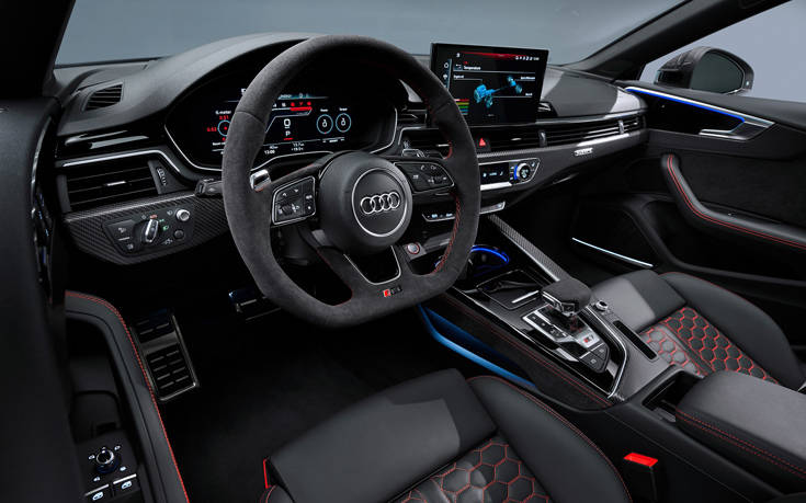 Το νέο μοντέλο λειτουργίας των RS 5 επικεντρώνεται σε οθόνη αφής MMI 10,1 ιντσών. Η μεγάλη, ελεύθερη οθόνη με ακουστική ανάδραση είναι ελαφρώς κεκλιμένη προς τον οδηγό. Αν υπάρχει το σύστημα πλοήγησης MMI navigation plus, μια συγκεκριμένη οθόνη RS παρέχει στον οδηγό πληροφορίες σχετικά με τη θερμοκρασία οδήγησης, τη διαμήκη και πλευρική επιτάχυνση, το σπορ διαφορικό quattro, την πίεση ελαστικών και τη θερμοκρασία ελαστικών.