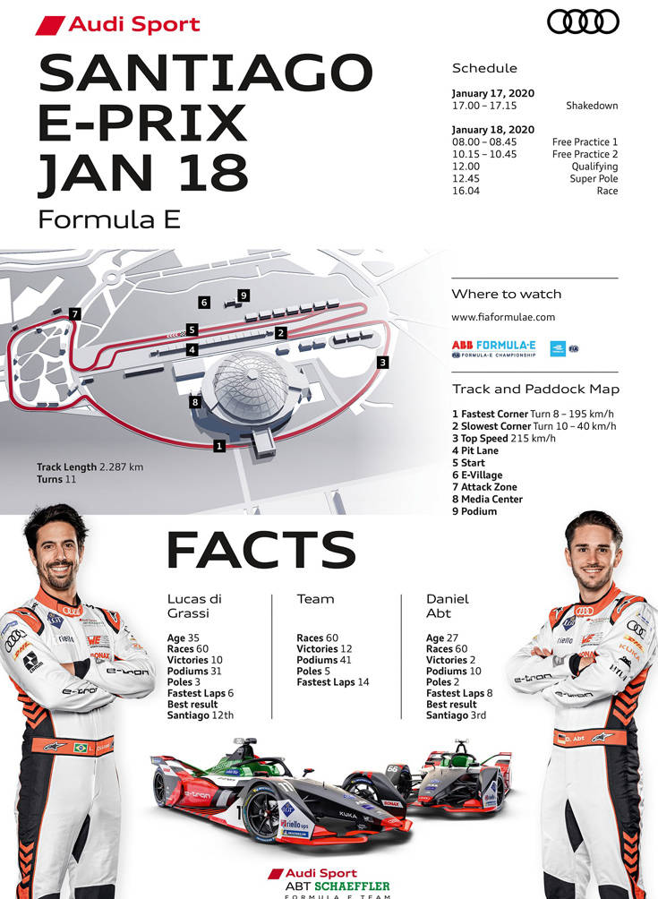 Έχει προηγηθεί ο διπλός, πρώτος αγώνας της σεζόν, στην Σαουδική Αραβία, στα τέλη Νοεμβρίου του περασμένου έτους, με την Audi να είναι η μοναδική ομάδα που έχει συμμετάσχει σε όλους, και τους 60 προηγούμενους αγώνες της Formula E, ενώ στην Χιλή, η Γερμανική ομάδα κατεβαίνει πανέτοιμη με πολλές φιλοδοξίες και οδηγούς τους Luca di Grassi και Daniel Abt.