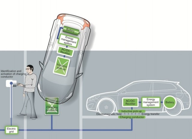 Ένα επαγωγικό πηνίο που ανήκει σε ένα σταθμό φόρτισης, δημιουργεί ένα εναλλασσόμενο ηλεκτρομαγνητικό πεδίο, ενώ ένα δεύτερο που βρίσκεται στο αυτοκίνητο, λαμβάνει την ενέργεια από το ηλεκτρομαγνητικό πεδίο και την μετατρέπει σε ηλεκτρική, φορτίζοντας έτσι τις μπαταρίες του αυτοκινήτου.