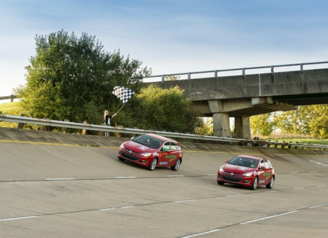 Δύο Astra 2.0 CDTI μπήκαν στο κυνήγι 18 νέων ρεκόρ στην πίστα υψηλών ταχυτήτων στο Millbrook. Δώδεκα συντάκτες από διεθνή Μέσα αυτοκινήτου οδήγησαν για 24 ώρες με τέρμα γκάζι στο High Speed Bowl με τις θεαματικές, κεκλιμένες καμπές.