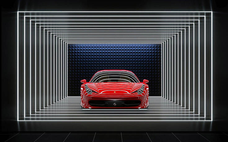 Η Supercar Capsule είναι μια κοινή δράση των Superfuturedesign και ASZarchitetti, που έχουν δεκάδες πολυτελείς βιτρίνες καταστημάτων στο ενεργητικό τους, κι έτσι ξέρουν καλά πώς να τραβούν τα βλέμματα.