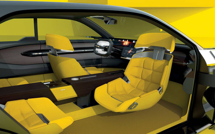 Για να επιτευχθεί αυτό, το απόλυτα συμμετρικό κάθισμα του συνοδηγού, ανακλίνεται κατά 180 μοίρες ώστε να «κοιτάει» προς τα πίσω. Με αυτό τον τρόπο οι επιβάτες μπορούν να κάνουν κοινή χρήση της κεντρικής κονσόλας με τη μεγάλη οθόνη, που διατρέχει σχεδόν ολόκληρο το μήκος της καμπίνας, απολαμβάνοντας μία εμπειρία σαν να βρίσκονται στο σαλόνι του σπιτιού τους.