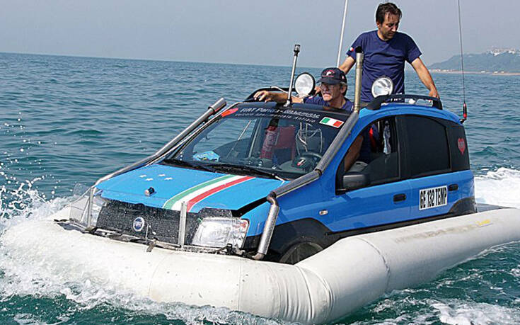 Ακόμα ένα αμφίβιο Panda, βασισμένο πάλι στο πλαίσιο της έκδοσης 4×4, αυτή τη φορά όμως εφοδιασμένο με μια λαστιχένια «ζώνη» με αέρα γύρω από το αμάξωμα και ένα κινητήρας waterjet, που επέτρεψαν σε αυτό το «αδιάβροχο» Panda να διασχίσει το κανάλι της Μάγχης σε μόλις 6 ώρες.