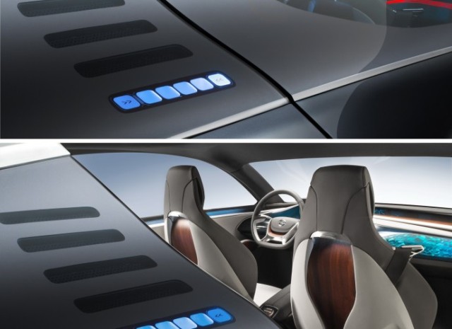 Δεν υπάρχουν πλέον οι συμβατικές, ανεξάρτητες οθόνες που προβάλλουν τις διάφορες πληροφορίες. Αντί αυτών, οι οδηγοί έχουν μπροστά τους ένα φαρδύ, ανάγλυφο ταμπλό που εκτείνεται από τη μία πόρτα μέχρι την άλλη, και χρησιμοποιείται σαν επιφάνεια προβολής.