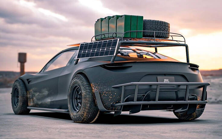 Κι αυτό έκανε η σχεδιαστική φίρμα BradBuilds, οραματίστηκε ένα Tesla Roadster για την Αποκάλυψη.