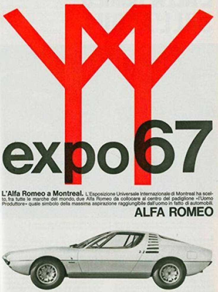 Είναι η εποχή που η ταινία του Mike Nichols «Ο Πρωτάρης» με τον Dustin Hoffman και την κόκκινη του Alfa Romeo Spider Duetto, έχουν καταστήσει το μοντέλο, αλλά και συνολικά τη μάρκα εξαιρετικά δημοφιλή πλέον και στη Β. Αμερική. Είναι η χρυσή εποχή της μάρκας και οι διοργανωτές της EXPO 1967, το θέμα της οποίας ήταν «Ο Άνδρας και ο κόσμος του», ζητούν από την Alfa Romeo να δημιουργήσει την απόλυτη έκφραση της αυτοκίνησης.