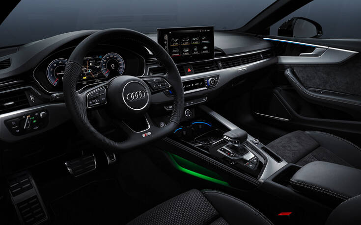 Το νέο A5 χρησιμοποιεί μια νέα κύρια μονάδα με αυξημένη υπολογιστική ισχύ ( την πλατφόρμα ενημέρωσης-ψυχαγωγίας MIB3, τρίτης γενιάς). Συνεργάζεται με μία εξίσου νέα μονάδα επικοινωνίας, η οποία χειρίζεται την τηλεφωνία και τις υπηρεσίες συνδεσιμότητας. Επιπλέον, διαθέτει στάνταρ ένα Wi-Fi hotspot. Ο οδηγός ελέγχει την οθόνη12,3 ιντσών, full-HD (1920×720 pixels) του Audi virtual cockpit plus μέσω ενός πολυλειτουργικού τιμονιού, επιλέγοντας ανάμεσα σε τρεις προβολές. Διαθέσιμο προαιρετικά και ένα head-up display που προβάλλει σημαντικές πληροφορίες στο άμεσο οπτικό πεδίο του οδηγού.