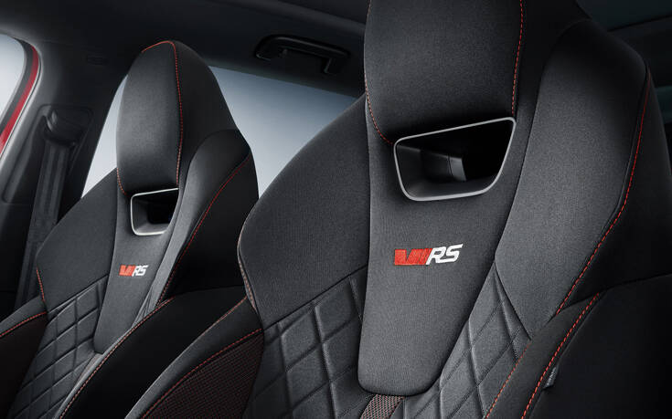 Στο εσωτερικό επικρατεί το μαύρο χρώμα. Το δερμάτινο πολυλειτουργικό τιμόνι τριών ακτίνων έχει το λογότυπο vRS και διαθέτει paddles για την λειτουργία του DSG. Τα μπροστινά σπορ καθίσματα είναι επικαλυμμένα με μαύρο ύφασμα, ενώ τα προαιρετικά καθίσματα Ergo διαθέτουν Alcantara και δερμάτινη ταπετσαρία, καθώς και ρύθμιση του βάθους. Τα καθίσματα είναι διακοσμημένα με λογότυπο RS και έγχρωμες διακοσμητικές ραφές (σε κόκκινο ή ασημί-γκρι χρώμα), οι οποίες διακοσμούν και το δερμάτινο τιμόνι, τα υποβραχιόνια και το ταμπλό, που επίσης είναι επενδυμένο με Alcantara. Οι διακοσμητικές λωρίδες στυλ RS και τα πεντάλ με αλουμινένια επένδυση, ολοκληρώνουν τη σπορ εικόνα.