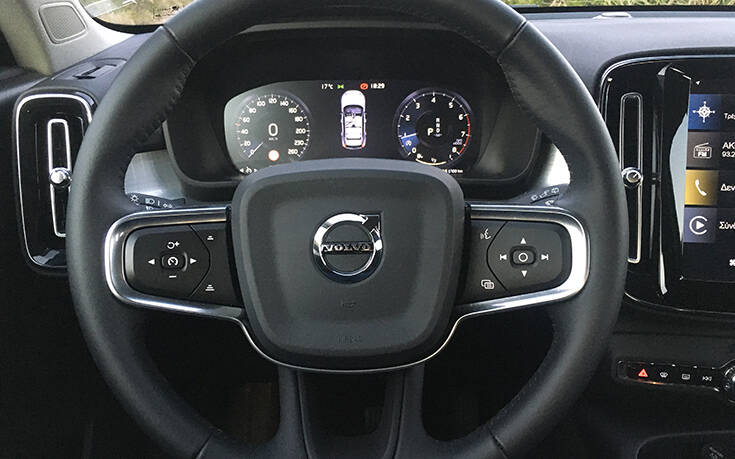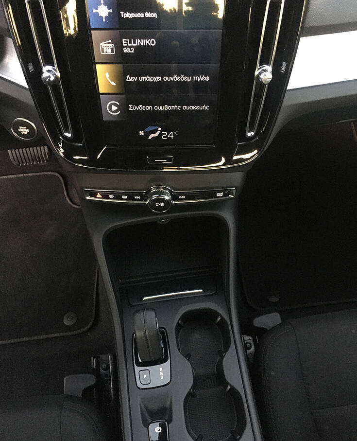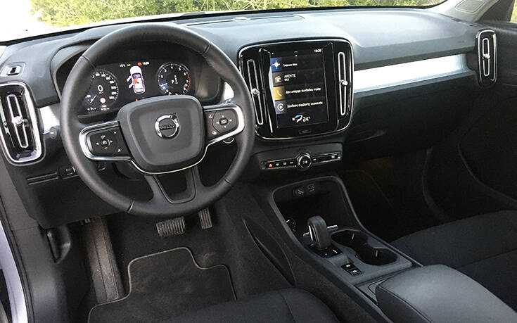 Το ταμπλό, είναι λιτό, όμορφο, ευανάγνωστο, με μαλακή ποιοτική επένδυση και όμορφο διάκοσμο. Την παράσταση εδώ κλέβει η μεγάλη κατακόρυφη οθόνη, από την οποία ο οδηγός ελέγχει όλες τις λειτουργίες (κλιματισμό, ηχοσύστημα, τηλέφωνο κ.λπ.). Εδώ είναι και η μεγαλύτερη δυσκολία που θα έχει ο «πρωτόμπαρκος» χρήστης του XC40, καθώς η οθόνη θέλει εξοικείωση για τις επιλογές από λειτουργία σε λειτουργία, κάτι που απαιτεί την αφιέρωση χρόνου για την ανάγνωση του manual και πρακτική εξάσκηση (κάτι που δεν συνιστούμε να το κάνετε εν κινήσει), αλλά τελικά ο οδηγός αποζημιώνεται, αφού η ζωή του στην διάρκεια της οδήγησης θα γίνει πολύ πιο εύκολη.