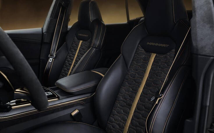 Το bodywork από ανθρακόνημα διατηρήθηκε, η Manhart έβαλε ωστόσο το χέρι της και στο εσωτερικό, με νέα δερμάτινη ταπετσαρία και αισθητικές πινελιές εδώ κι εκεί.