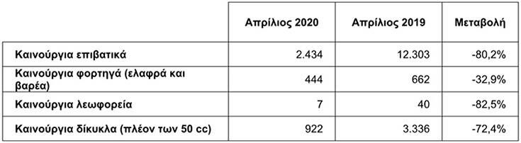 Όπως ήταν αναμενόμενο, οι πωλήσεις καινούργιων αυτοκινήτων τον περασμένο Απρίλιο «έπιασαν πάτο», με πτώση που ξεπέρασε το 80% σε σχέση με τον αντίστοιχο μήνα του προηγούμενου έτους.