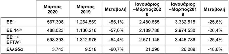 Σε ανάλογα πτωτικά επίπεδα κυμάνθηκε και η αγορά (επιβατικών) στο σύνολο της ΕΕ, που με βάση τα στοιχεία του Ευρωπαϊκού Συνδέσμου Κατασκευαστών Αυτοκινήτων (www.acea.be) κινήθηκε ως και το Μάρτιο (δεν έχουμε ακόμα στοιχεία Απριλίου) ως εξής: