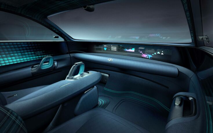 Το σύστημα ψυχαγωγίας είναι ενσωματωμένο στη μεγάλη οθόνη που εκτείνεται σε ολόκληρο το μπροστινό μέρος του εσωτερικού του οχήματος. Όταν το αυτοκίνητο δεν κινείται μπορεί να χρησιμοποιηθεί ως χώρος ψυχαγωγίας μεταβαίνοντας σε Relax Mode, όπου τα καθίσματα παίρνουν κλίση και το ταμπλό περιστρέφεται προς τα πάνω, δημιουργώντας τη βέλτιστη θέση για να απολαύσετε το περιεχόμενο που προβάλλεται στην οθόνη. Λόγω της έλλειψης τιμονιού, οι επιβάτες έχουν σχεδόν μηδενικά οπτικά εμπόδια. Καθώς προχωρά η τεχνολογία αυτόνομης οδήγησης, η δυνατότητα χρήσης οχημάτων ως χώρων χαλάρωσης θα αυξάνεται.