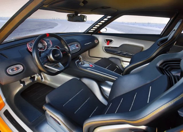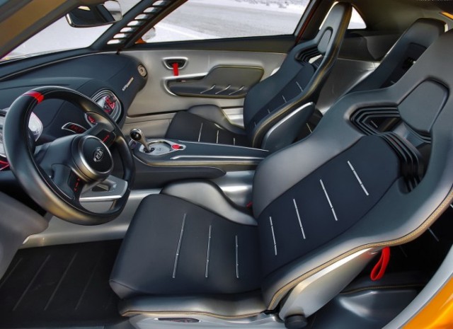 Μπροστά από τον οδηγό βρίσκεται το χοντρό σε πάχος τιμόνι σε σχήμα «D» και ο πίνακας οργάνων με κόκκινο LED φωτισμό με μεγάλο στροφόμετρο και ένδειξη της επιλεγμένης ταχύτητας στο κιβώτιο. Σε ανάμνηση των αγωνιστικών αυτοκινήτων του παρελθόντος οι εσωτερικές λαβές των θυρών έχουν αντικατασταθεί από κόκκινους ιμάντες έλξης. Χαρακτηριστική είναι η απουσία ηχοσυστήματος. Όπως λέει η Kia, «το ηχοσύστημα βρίσκεται κάτω από το καπό και ηχεία είναι οι εξατμίσεις»!