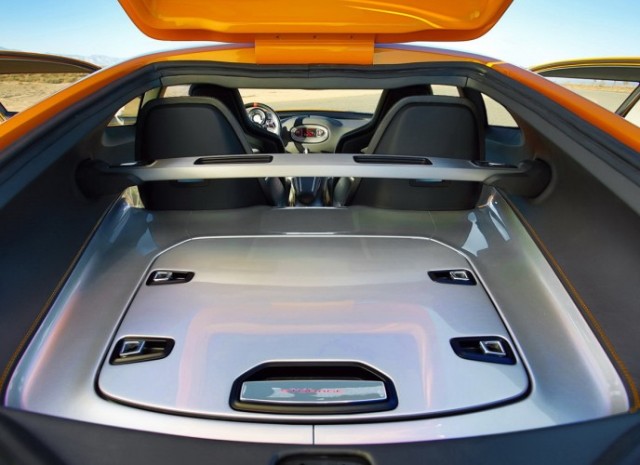 Στο πλάι, ο σχεδιασμός των μαρσπιέ έχει ενσωματωμένους αεραγωγούς για την ενίσχυση της ροής αέρα προς τα πίσω φρένα, ενώ πίσω το γυάλινο κάλυμμα ανοίγει για να αποκαλύψει τον αποθηκευτικό χώρο και τις άνω βάσεις των πίσω αμορτισέρ. Τα πίσω φώτα LED φωτίζουν μέσα από ένα ενιαίο μαύρο πάνελ ακριβώς πάνω από τις απολήξεις της εξάτμισης στον προφυλακτήρα.