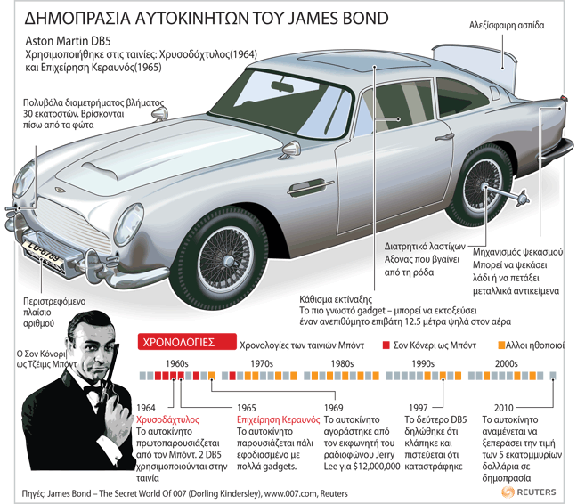 Οι φανατικοί λάτρεις των αυτοκινήτων θα έχουν τη δυνατότητα να αγοράσουν τη θρυλική πλέον Aston Martin του -με όλα τα απαραίτητα αξεσουάρ- που χρησιμοποιούνταν στα γυρίσματα των ταινιών του James Bond.