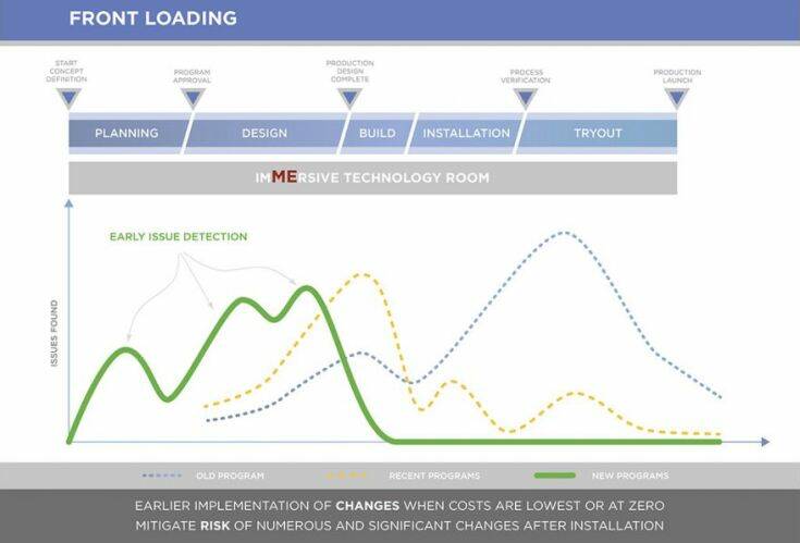 Ο χώρος επιτρέπει την αξιολόγηση του σχεδιασμού και της λειτουργίας των γραμμών παραγωγής πριν καν αυτές δημιουργηθούν. Αυτή η δυνατότητα μεταφράζεται σε ταχύτερες και σωστότερες επιλογές, μειωμένο κόστος, καλύτερη ποιότητα και μεγαλύτερη ασφάλεια για το προσωπικό. Στο ImMErsive Technology room, οι ομάδες που ασχολούνται με την παραγωγική διαδικασία έχουν απόλυτη ελευθερία να διαμορφώσουν σε ελάχιστο χρόνο το χώρο ώστε να δοκιμάσουν τις ιδέες τους και να καταλήξουν στις βέλτιστες λύσεις.