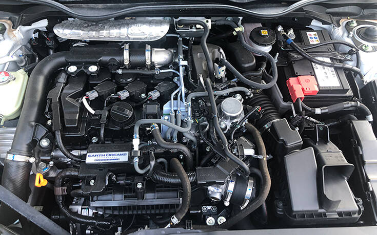 Το Civic της δοκιμής μας χρησιμοποιεί το 3κύλινδρο 1000άρη (988 κ.εκ.) κινητήρα VTEC τούρμπο, που αποδίδει 127 ίππους/5.500 στροφές, με μέγιστη ροπή 200 Nm/2.250 στροφές. Ο κινητήρας αυτός διαθέτει άμεσο ψεκασμό καυσίμου, δυο εκκεντροφόρους, 12 βαλβίδες, μονό υπερτροφοδότη χαμηλής αδράνειας, ηλεκτρονική βαλβίδα ελέγχου πίεσης υπερπλήρωσης (wastegate), intercooler, ηλεκτρονικά ελεγχόμενο μεταβλητό χρονισμό και βύθιση των βαλβίδων (VTEC), αλλά και διπλό μεταβλητό έλεγχο χρονισμού (Dual-VTC).
