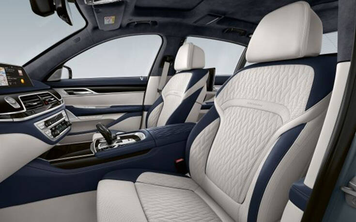 Τέλος, επεκτείνονται οι δυνατότητες εξατομίκευσης του εσωτερικού και του εξωτερικού. Η γκάμα νέων εξωτερικών χρωματισμών για τα μοντέλα της Σειράς 7 θα περιλαμβάνουν τώρα το Phytonic Blue metallic και το Frozen Bluestone metallic, ενώ μία φρέσκια νότα πολυτέλειας προστίθεται στην καμπίνα με τη νέα έκδοση της πλήρως δερμάτινης επένδυσης BMW Individual Merino σε Smoke White/Night Blue/Black και το δερμάτινο τιμόνι της BMW Individual.