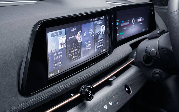 Το σύστημα απεικόνισης απαρτίζεται μια οθόνη λειτουργιών 12,3 ιντσών και μια κεντρική οθόνη 12,3 ιντσών σε έναν μόνο ορίζοντα. Με την εμφάνιση πολλαπλών όψεων πληροφοριών σε ένα οριζόντιο επίπεδο, οι πληροφορίες μπορούν να αφομοιωθούν γρήγορα χωρίς να αποσπάται ο οδηγός από το δρόμο. Οι δύο οθόνες είναι προσανατολισμένες σε κυματοειδές σχήμα για να διασφαλιστεί ότι σημαντικές πληροφορίες για το όχημα, όπως οι πληροφορίες μπαταρίας, εμβέλειας και πλοήγησης, είναι εύκολα προσβάσιμες και κυλιόμενες με την αφή. Περαιτέρω πληροφορίες μπορούν να μετακινηθούν μεταξύ των οθονών για προσαρμογή και ιεράρχηση των πληροφοριών που εμφανίζονται ακριβώς πίσω από το τιμόνι για μια απαράμιλλη, προσωποποιημένη εμπειρία.